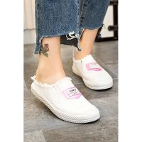 夏季半拖鞋无后跟帆布鞋女平底包头帆布拖鞋韩版休闲鞋平跟懒人鞋