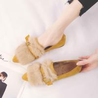 秋冬新款毛毛鞋女韩版百搭尖头平底豆豆鞋加绒女鞋懒人鞋平跟单鞋