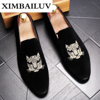 路蒙卡帝品牌男士豆豆鞋透气懒人鞋一脚蹬休闲鞋韩版潮流套脚刺绣磨砂皮鞋都市时尚型男鞋平底单鞋7