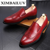 路蒙卡帝品牌秋季男士皮鞋雕花复古套脚透气懒人鞋时尚低帮内增高休闲鞋一脚蹬轻便舒适日常皮鞋男2