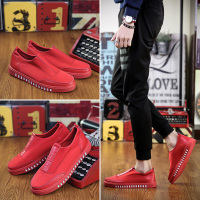 鞋小二2017春季透气帆布鞋男鞋红色低帮板鞋韩版黑白学生潮鞋GD权志龙同款一脚蹬懒人鞋男
