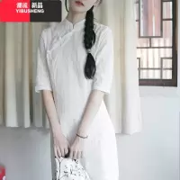 YIBUSHENG改良版旗袍日常可穿白色茶服小个子棉麻修身连衣裙春装年轻少女夏