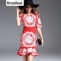 Kruidvat红裙子重工刺绣显瘦荷叶边礼服裙包臀鱼尾连衣裙敬酒服红081红色
