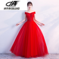 敬酒服新娘2017结婚新款冬季一字肩红色长款礼服宴会晚礼服连衣裙