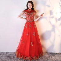 敬酒服2017新款新娘结婚立领红色长款回门服订婚礼服连衣裙秋冬季