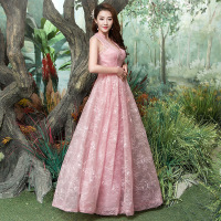 新娘敬酒服新款长款宴会礼服蕾丝伴娘服结婚晚礼服连衣裙修身图片豆沙粉色