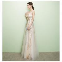 主持人礼服女新款端庄大气金色年会宴会晚礼服连衣裙长款秋冬金色