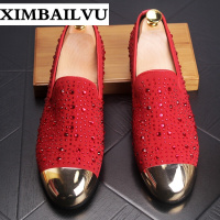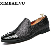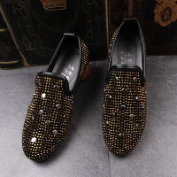 男士个性铆钉男鞋发型师镶钻套脚乐福鞋黑色亮片休闲鞋青年韩版潮