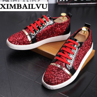 品牌欧美亮片休闲鞋青年男士乐福鞋韩版发型师内增高男鞋透气豆豆鞋板鞋低帮系带平底单鞋