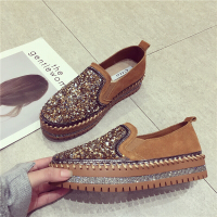 SUNTEK一脚蹬套脚懒人鞋2023春夏季厚底百搭亮片乐福鞋单鞋女休闲鞋