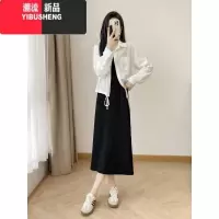 YIBUSHENG季一整套高级感双肩带连衣裙白色防晒衬衫短款外套搭配吊带长裙
