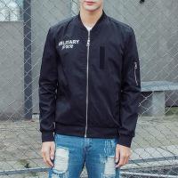 秋季新款男装夹克衫青年男休闲收口袖棒球领外套男士时尚纯色外套