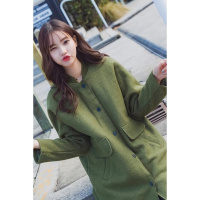 棒球领毛呢外套女秋冬学生中长款韩版宽松加厚茧型呢子大衣女