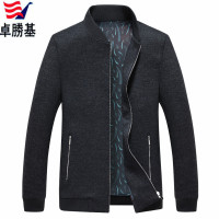 卓勝基爸爸装春季秋季中年男士夹克外套修身商务休闲男装毛呢茄克衫立领厚款