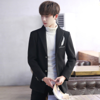 步来褶惠2017韩版男士休闲西服上衣外套青年英伦修身毛呢小西装夏