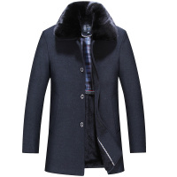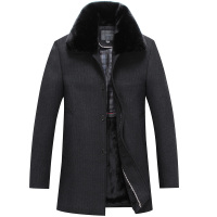2017冬季新款中长款毛呢大衣男士中年商务纯色毛领呢子风衣外套男