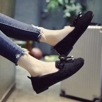 毛毛鞋单鞋女秋冬韩版百搭蝴蝶结加绒女鞋豆豆鞋水钻平底鞋子