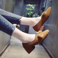 毛毛鞋单鞋女秋季女鞋韩版百搭中跟复古方头奶奶鞋粗跟鞋子潮