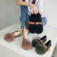 2017秋冬款韩版圆头平底单鞋毛毛鞋女一脚蹬懒人鞋毛球浅口豆豆鞋