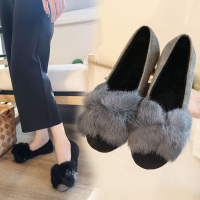 2017韩版新款毛毛鞋秋季平底女鞋子孕妇懒人鞋加绒百搭豆豆鞋单鞋