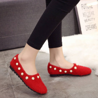 老北京布鞋秋冬棉鞋女平底休闲单鞋毛毛鞋孕妇时尚防滑加绒豆豆鞋