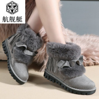 浅娜芬雪地靴女短筒厚底防滑加绒加厚保暖棉鞋毛毛鞋流苏豆豆鞋面包鞋潮 灰色 40