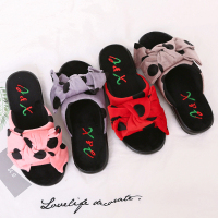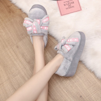 冬季高跟家居厚底防滑保暖棉拖鞋女可爱室内包跟月子蝴蝶结毛毛鞋
