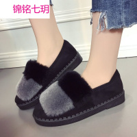 锦铭七玥毛毛鞋2017新款秋季平底单鞋女加绒豆豆鞋厚底孕妇鞋软底韩版女鞋