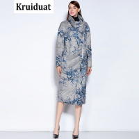 Kruidvat2017春季新款女装加厚长款翻领印花羽绒服外套MY01