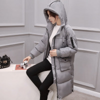 莞馨(wanxin)新款韩版长款连帽棉衣女冬季袖标加厚保暖羽绒棉服修身面包服棉袄大衣