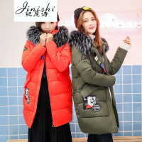纪尼诗女装闺蜜2018中长款羽绒服女大毛领韩版大码棉衣外套气质女装
