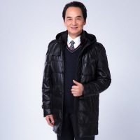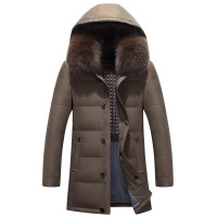 海宁中老年爸爸装真皮衣羽绒服男士加厚中长款带帽水貂领外套