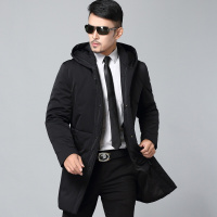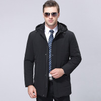 新款冬季纯色合身翻领中年商务时尚都市中长款男式羽绒服加厚带帽黑色