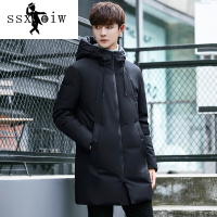 ssxoiw冬装新款男生韩版修身款带帽羽绒服男士中长款学生男外套