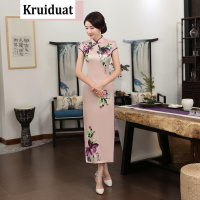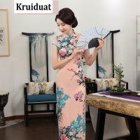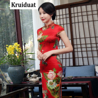 奈琴尔新款夏秋长旗袍裙大码女装日常宴会演出服表演复古绸缎连