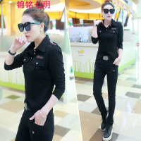 锦铭七玥2018迷彩恤女长袖黑色翻领女装时尚肩章大码水兵舞服演出服12