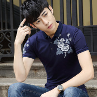 薇侣2017新品男短袖t恤夏季男装短袖体恤立领修身POLO衫有领带领印花上衣