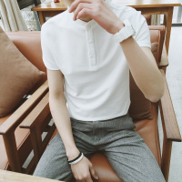俊言港仔夏季纯色立领POLO衫韩国男士气质修身短袖T恤