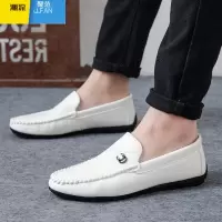 聚范2024年新款豆豆鞋男士潮流懒人男鞋套脚软皮软底白色休闲皮鞋潮鞋