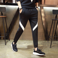 UYUK2017秋冬季男士修身休闲裤青少年潮流拼接免烫小脚裤男束脚长裤子黑色