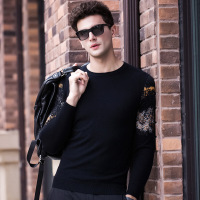 2017新款秋冬季纯羊毛衫男装圆领青年韩版毛衣男士针织打底衫黑色