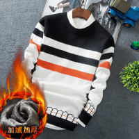 2017年冬季男士加绒毛衣加厚保暖圆领横条纹针织衫线衣打底衫