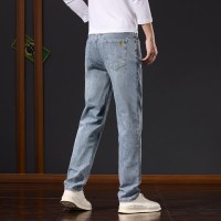 经典全底印花牛仔裤男士秋冬时尚刺绣修身弹力休闲裤男款