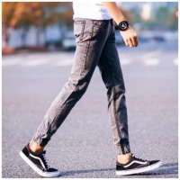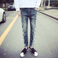 莞馨男装牛仔裤青春流行中腰修身小脚水洗青少四季长裤潮小脚裤牛仔裤牛仔蓝