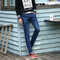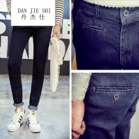 丹杰仕2017港仔文艺范男装秋冬新款牛仔裤加新厚男装四季流行款式韩版修身潮流长裤藏青色
