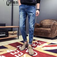 男装休闲牛仔裤新款青少年时尚潮流韩版修身四季简约百搭小脚长裤