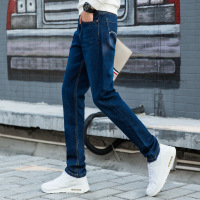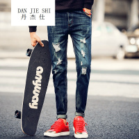 丹杰仕2017港仔文艺范冬季男士牛仔裤男直筒男裤青年韩版修身款男装复古休闲915p55深蓝