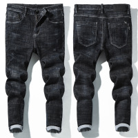 秋季弹力牛仔裤男士修身青年直筒韩版休闲男裤子冬款加厚黑色长裤