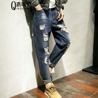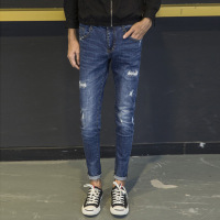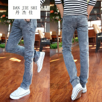 YANXU高端潮牌夏季薄款黑须牛仔裤男修身小脚韩版休闲显瘦长裤子男