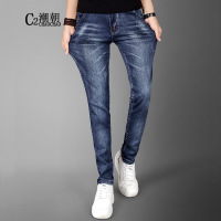 年弹力牛仔裤印花男士直筒修身男裤夏季薄款休闲男士长裤